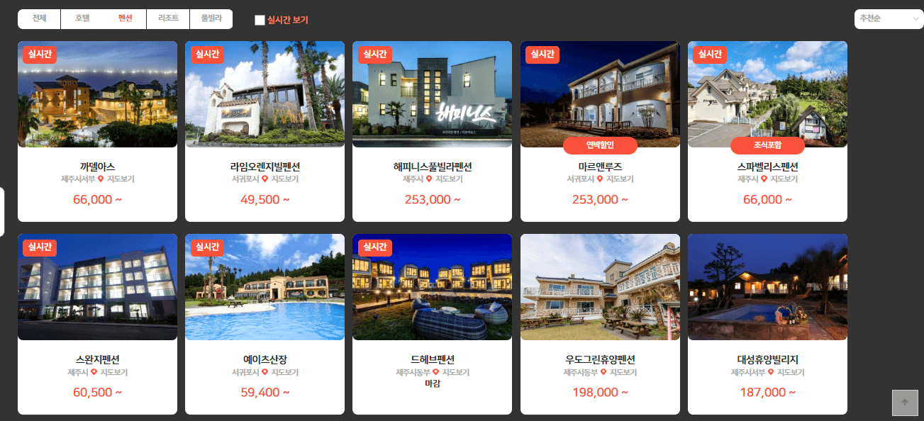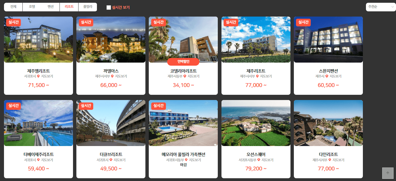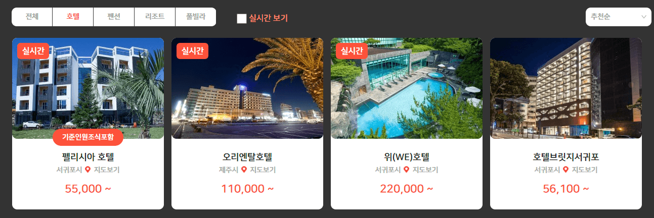 제주속으로에서 실시간으로 제주 전역에 퍼져있는 호텔, 펜션, 리조트, 풀빌라를 한번에 검색할 수 있게 되었습니다.