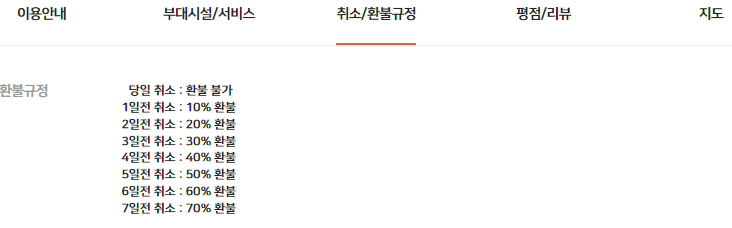 숙소 취소 환불규정 및 이용 안내